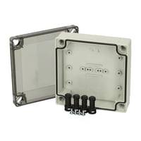 Kassebund med PUR pakning, skruer til montageplade/DIN-skinne og dæksel med dækselskruer af polyamid.