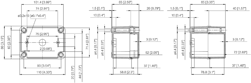 Indeholder : Kassebund med skruer til montageplade/DIN-skinne og dæksel med PUR pakning og dækselskruer af polyamid.