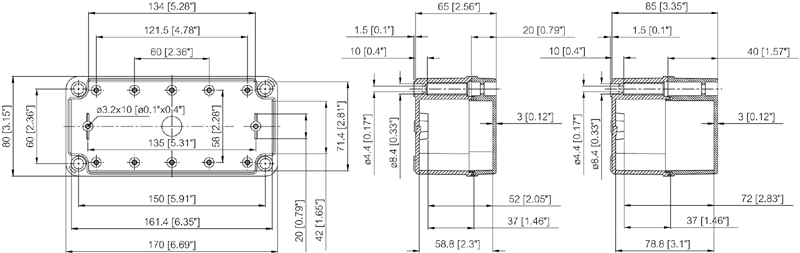 Indeholder : Kassebund med skruer til montageplade/DIN-skinne og dæksel med PUR pakning og dækselskruer af polyamid.