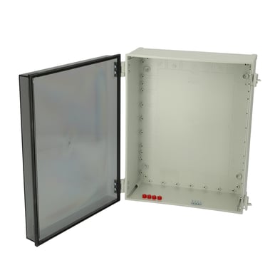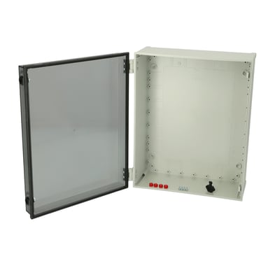 Bestehend aus : Kabinett-Unterteil, Tür mit PUR Dichtung, 3 mm Doppelbartschloß mit Schlüssel, Schrauben für Montageplatte/DIN-Schiene und Schutzkappen.