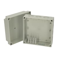 Bestehend aus : Unterteil mit TPE Dichtung, Schrauben für die Montageplatte/DIN-Schiene und Deckel mit Polyamid Deckelschrauben.