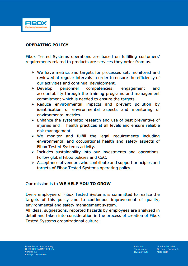 For Kiuruvesi: jouni.vartiainen@fibox.com and for Warsaw: rafal.cichocki@fibox.com
