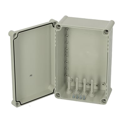 Base with screws for mounting plate. cover with PUR gasket and polyamide cover screws.