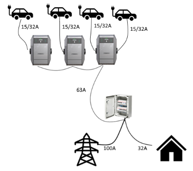 Käytettävissä oleva latausteho jaetaan samaan aikaan latauksessa olevien ajoneuvojen kesken automaattisesti. Kun autoja on latauksessa kerrallaan vähän, ne saavat täyttä tehoa. Kun autoja on latauksessa samanaikaisesti useita ja järjestelmän kapasiteetti tulee täyteen, pienentää järjestelmä autojen saamaa tehoa. Eli mitä enemmän autoja on latauksessa, sitä vähemmän lataustehoa on saatavilla autoa kohden.