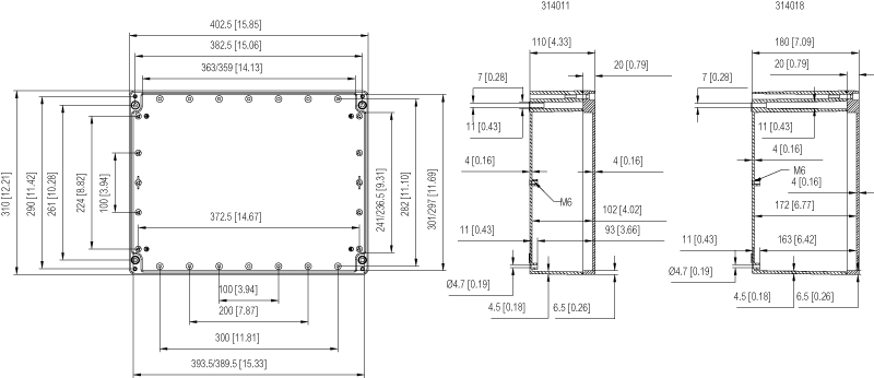 Sisältää : Alaosa asennuslevyn/DIN-kiskon kiinnitysruuveilla, kansi PUR-tiivisteellä ja ruostumattomasta teräksestä kansiruuvit.
