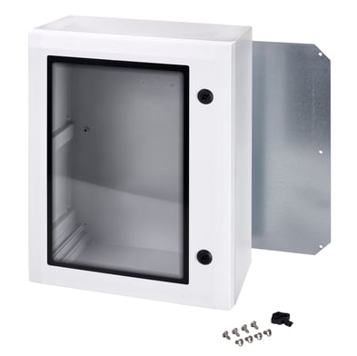 Sisältää : Kaapin alaosa, ovi PUR tiivisteellä, asennuslevy, ruuvit asennuslevylle. 3mm kaksoislehtilukko(t) avaimella. S versiot kääntökahvalla. Oviohjain sisältyy.