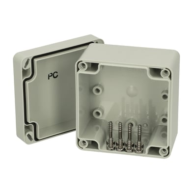 Sisältää : Alaosa asennuslevyn/DIN-kiskon kiinnitysruuveilla, kansi PUR-tiivisteellä ja ruostumattomasta teräksestä kansiruuvit.