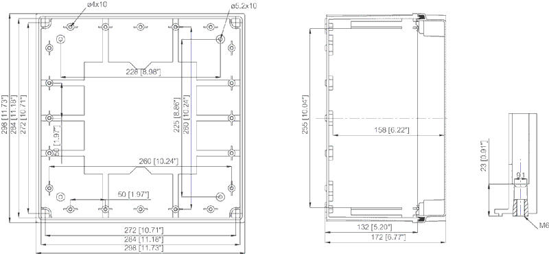 Alaosa asennuslevyn/DIN-kiskon kiinnitysruuveilla, kulmatulpat, kansi PUR-tiivisteellä ja CS 12137 kansiruuvit.