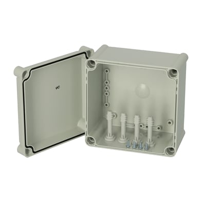 Sisältää : Alaosa asennuslevyn kiinnitysruuveilla, kansi PUR-tiivisteellä ja polyamidi kansiruuvit.