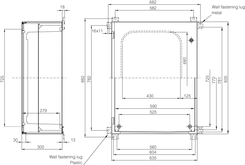 Dimensions 835 x 635 x 300