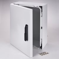Cabinet base. door with PUR gasket. mounting plate. screws for mounting plate. 3mm double bit lock(s) with key. S versions with swinghandle 2-point locking system. Door guide included.