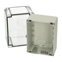 Base with screws for mounting plate/DIN-rail. cover with PUR gasket and stainless steel cover screws.