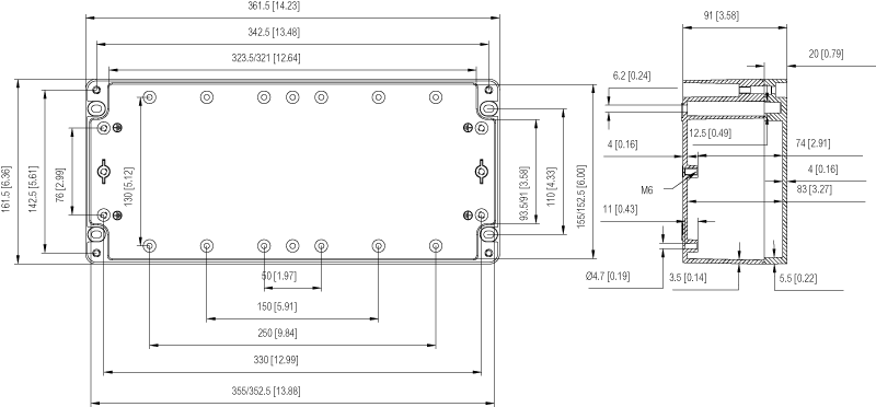 Zawiera : Podstawa ze srubami do plyty montazowej/szyny DIN, pokrywa uszczelka PUR i srubami ze stali nierdzewnej.