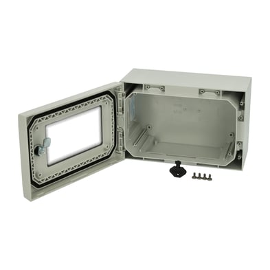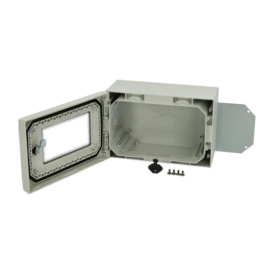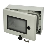 Zawiera : Podstawę szafki, drzwi z uszczelką PUR, płytę montażową, śruby do montażu płyty montażowej. Zamknięcie: standardowo zamek (zamki) dwupiórkowy 3mm, w wersji S - klamka z zamknięciem dwupunktowym. W - szafki z prz