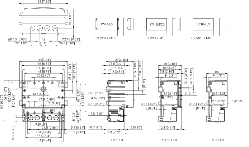 | FP 17/16 | Płyta czołowa (aluminium), dla obudów: |