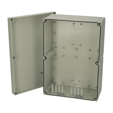 Podstawa z uszczelką PUR i śrubami do płyty montażowej/szyny DIN, pokrywa ze śrubami poliamidowymi.