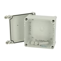 Podstawa ze śrubami do plyty montazowej, pokrywa z uszczelka PUR i srubami poliamidowymi.