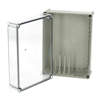 Podstawa ze śrubami do plyty montazowej, pokrywa z uszczelka PUR i srubami poliamidowymi.