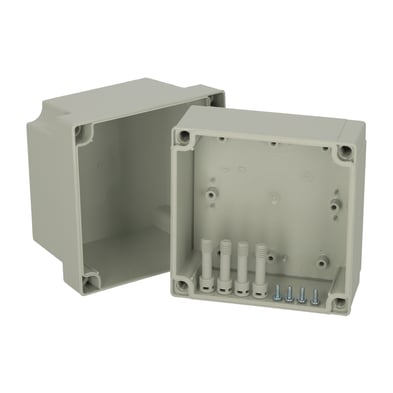 Base with TPE gasket. screws for mounting plate/DIN-rail and cover with polyamide cover screws.