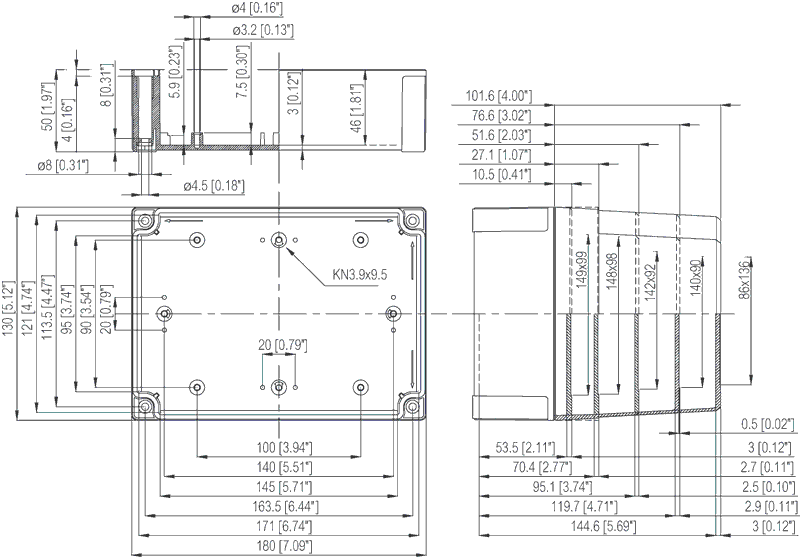 Including : Base with TPE gasket. screws for mounting plate/DIN-rail and cover with polyamide cover screws.