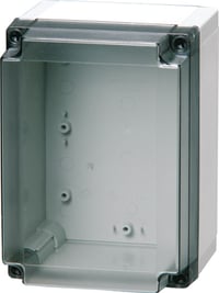 Base with TPE gasket. screws for mounting plate/DIN-rail and cover with polyamide cover screws.