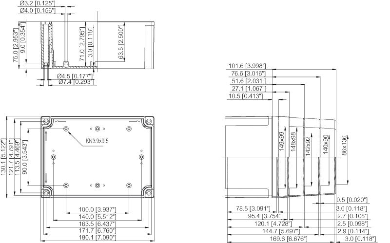 Including : Base with TPE gasket. screws for mounting plate/DIN-rail and cover with polyamide cover screws.