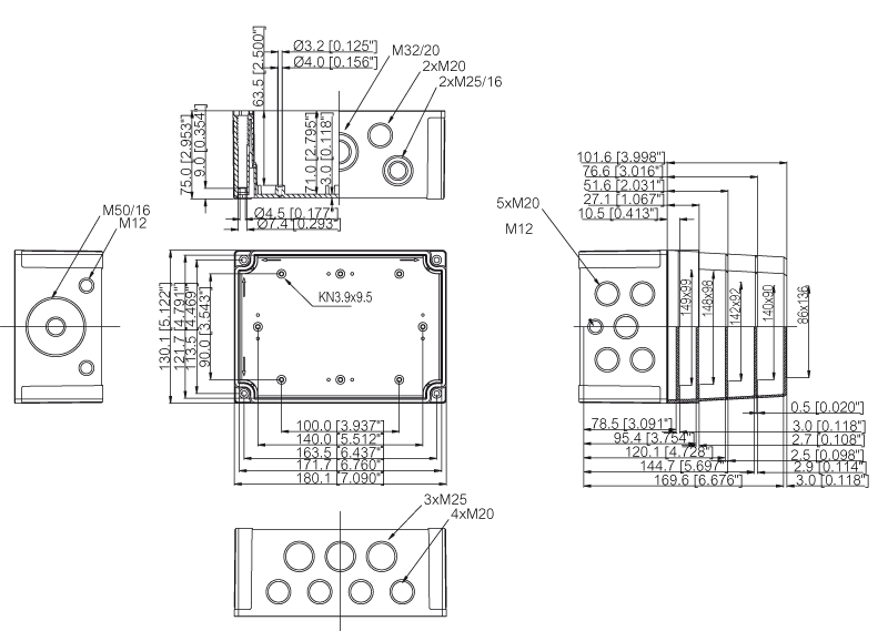 Including : Base with TPE gasket. screws for mounting plate/DIN-rail and cover with polyamide cover screws.