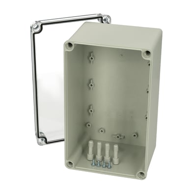 Base with screws for mounting plate/DIN-rail. cover with PUR gasket and polyamide cover screws.