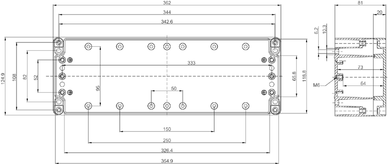 Dimensions 125 x 362 x 81
