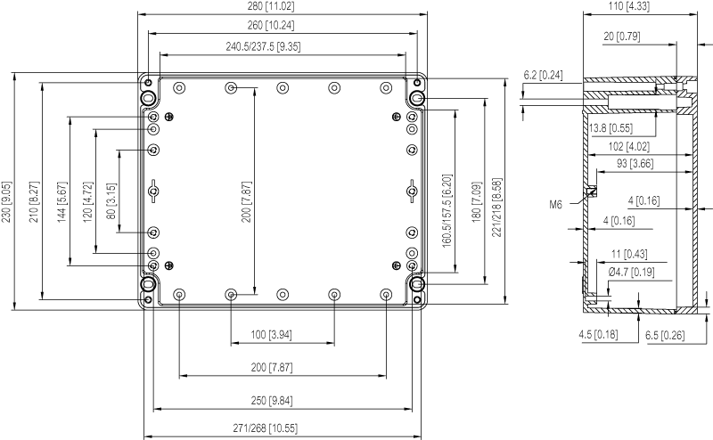 Including : Base with screws for mounting plate/DIN-rail. cover with PUR gasket and stainless steel cover screws.