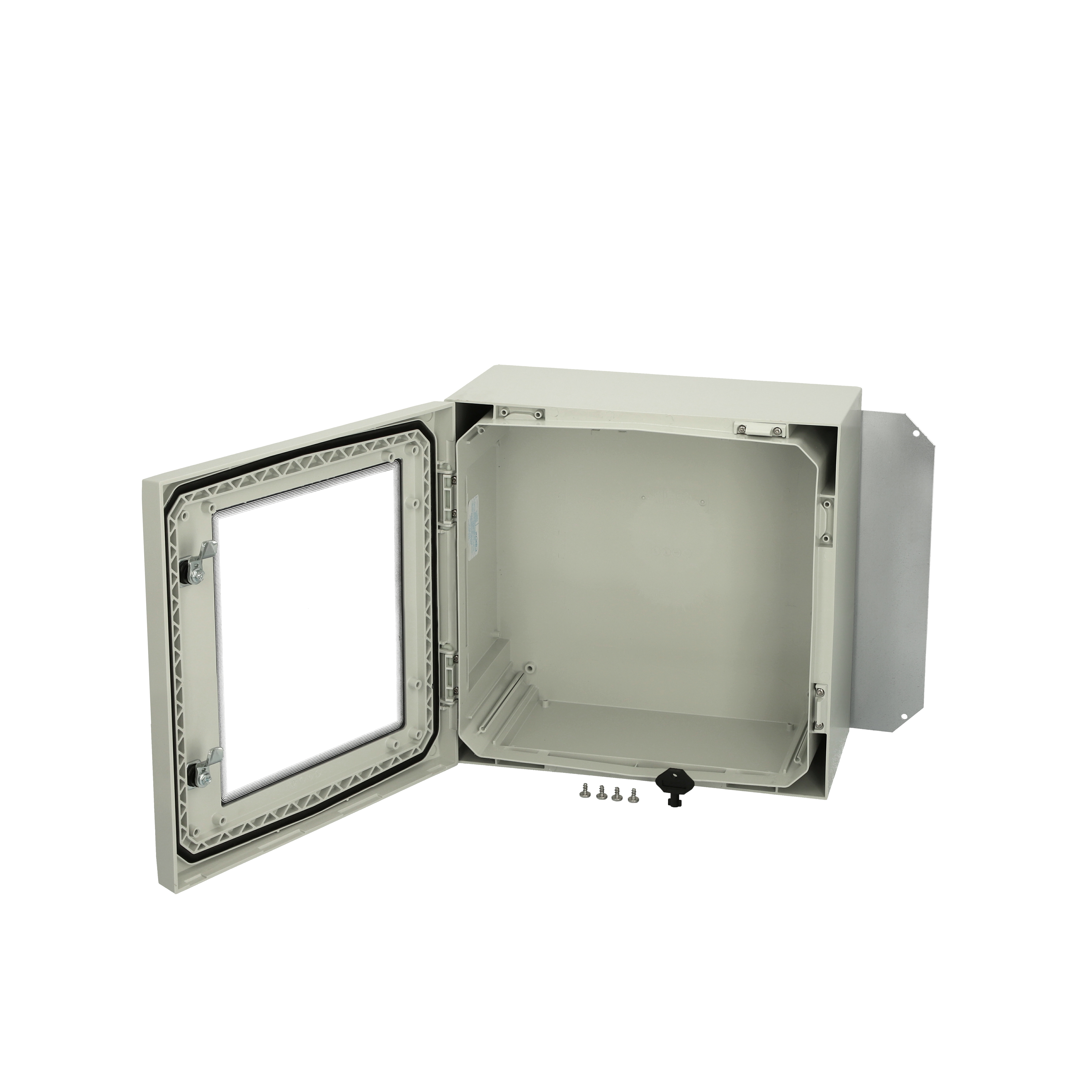 Including : Cabinet base. door with PUR gasket. mounting plate. screws for mounting plate. 3mm double bit lock(s) with key. Door guide included.