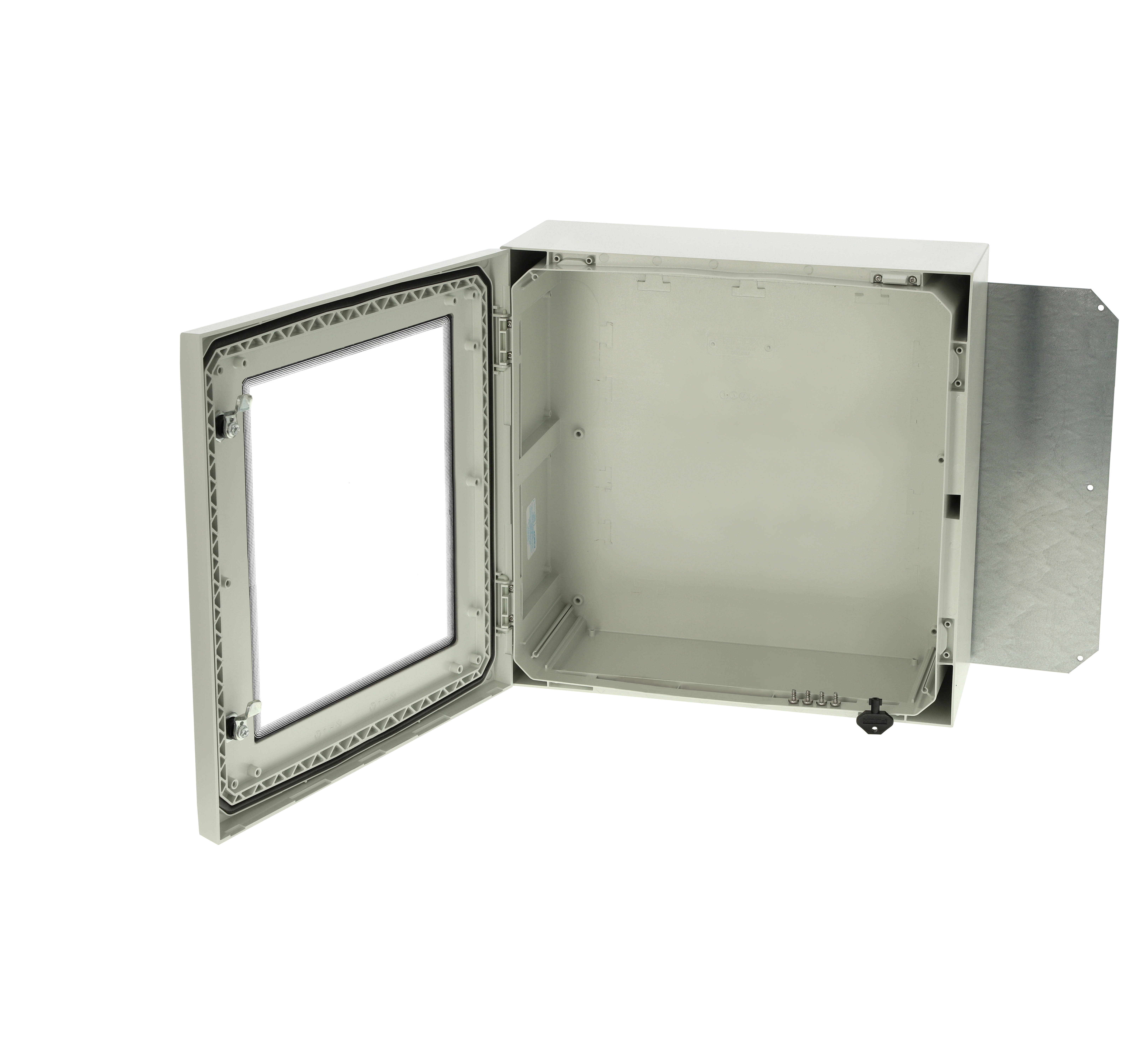 Including : Cabinet base. door with PUR gasket. mounting plate. screws for mounting plate. 3mm double bit lock(s) with key. S versions with swinghandle 2-point locking system. Door guide included.
