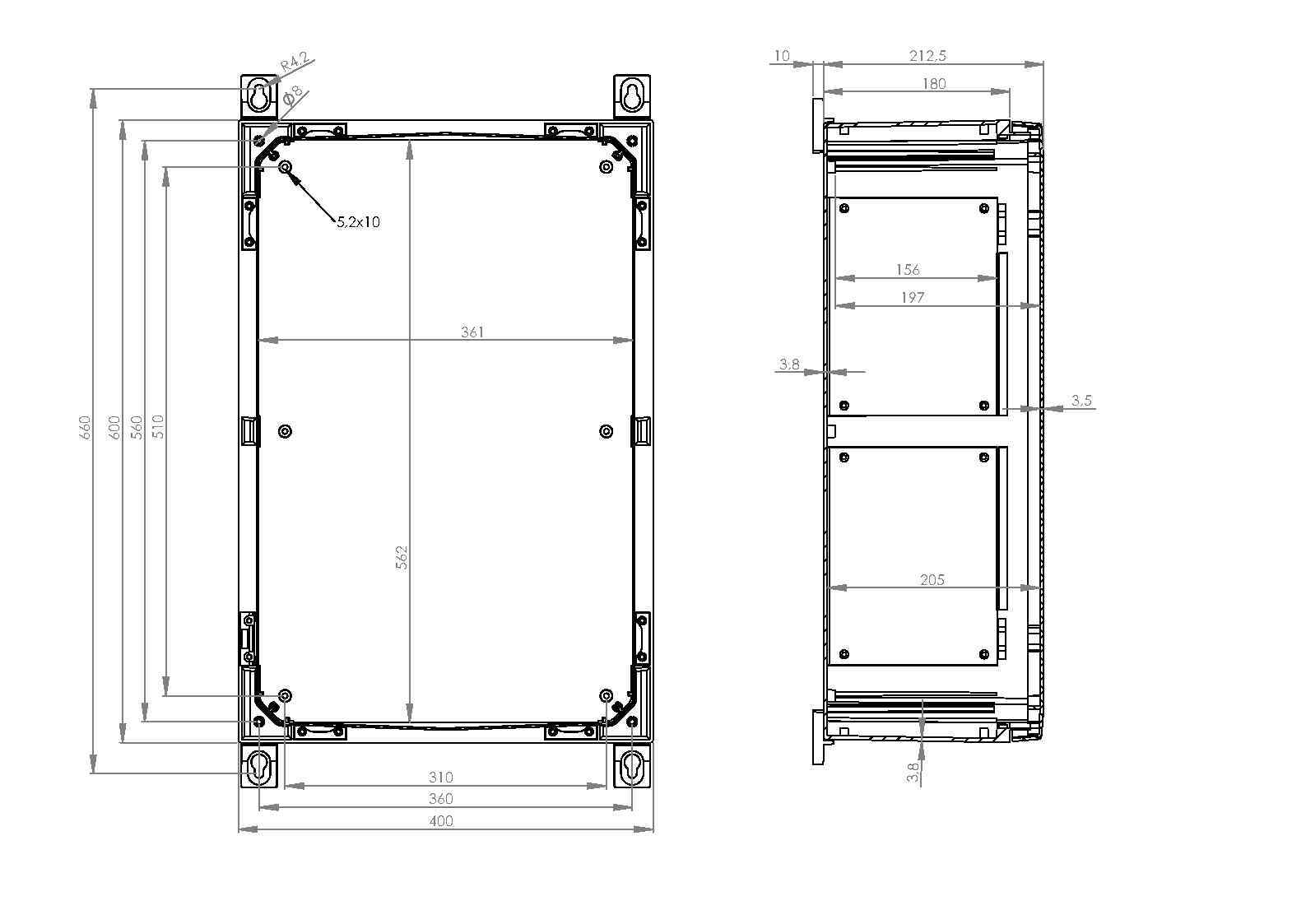 Including : Cabinet base, door with PUR gasket. 3mm double bit lock(s) with key. S versions with swinghandle 2-point locking system. Door guide included.