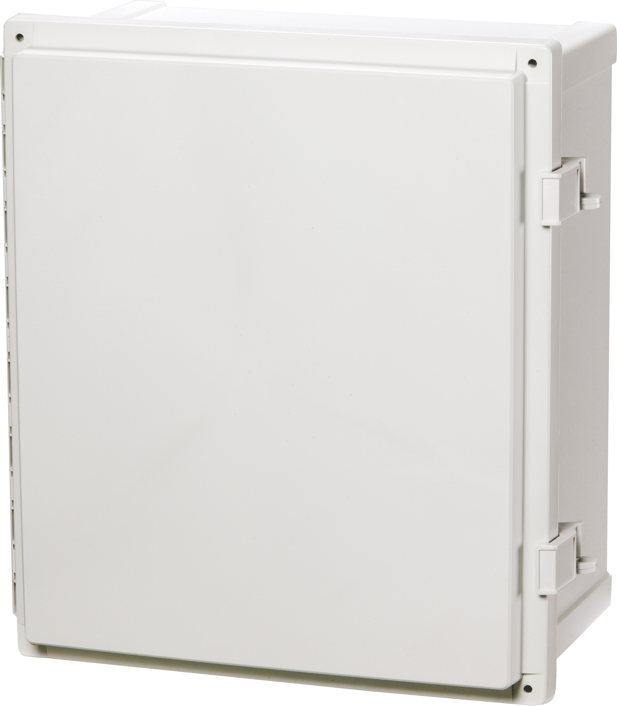 Hinged cover. Base with 10-32 brass inserts, latched cover with formed in place PUR gasket, stainless hinge pin. Quick release latches. Enclosure mounting foot kit. Accessory 10-32 screws for panel mounting.