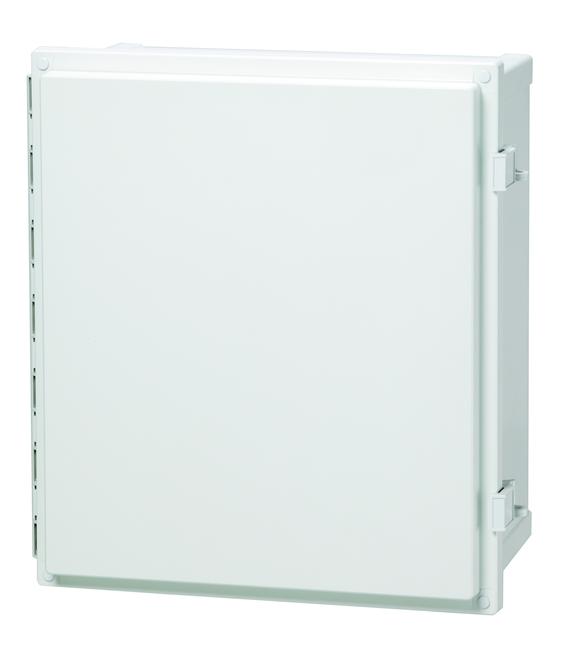 Hinged cover. Base with 10-32 brass inserts, latched cover with formed in place PUR gasket, stainless hinge pin. Quick release latches. Enclosure mounting foot kit. Accessory 10-32 screws for panel mounting.