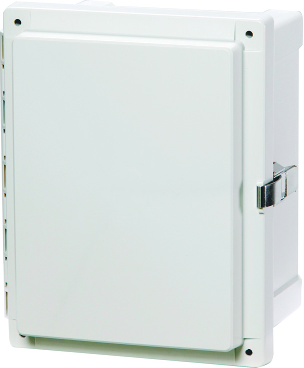 Hinged cover. Base with 10-32 brass inserts, latched cover with formed in place PUR gasket, stainless hinge pin. Quick release latches. Enclosure mounting foot kit. Accessory 10-32 screws for panel mounting.