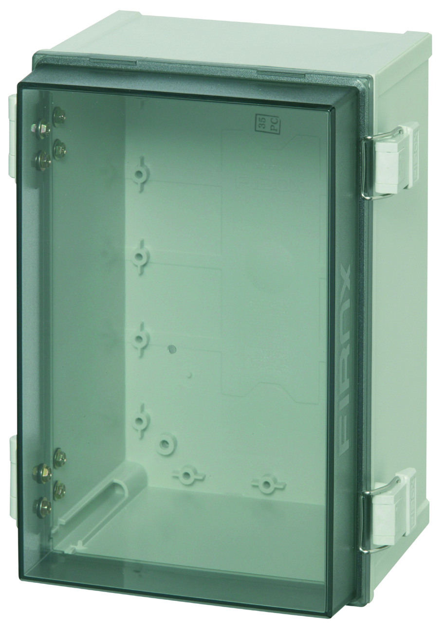 Cabinet base. door with PUR gasket. latches. screws for mounting plate/DIN-rail and corner plugs.