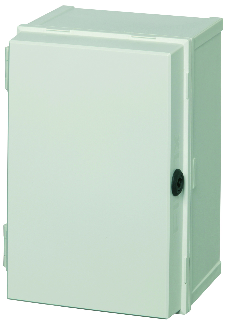 Cabinet base. door with PUR gasket. 3mm double bit lock(s) with key. screws for mounting plate/DIN-rail and corner plugs.