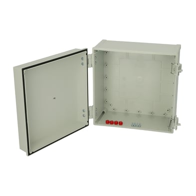 Including : Cabinet base. door with PUR gasket. latches. screws for mounting plate/DIN-rail and corner plugs.