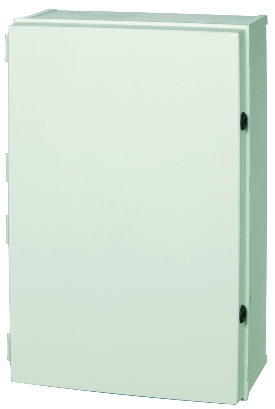 Cabinet base. door with PUR gasket. 3mm double bit lock(s) with key. screws for mounting plate/DIN-rail and corner plugs.
