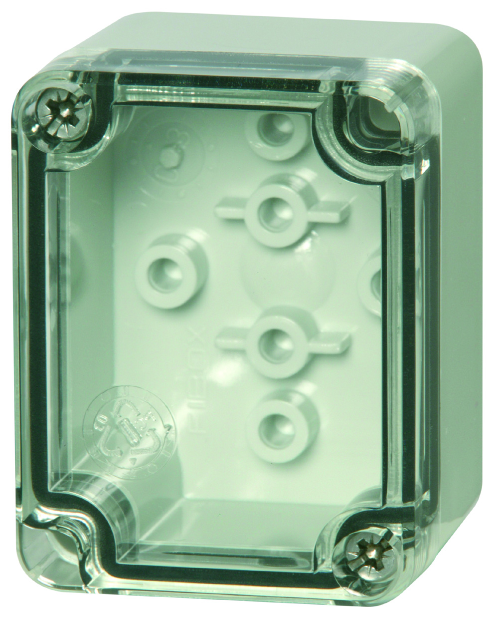 Base with screws for mounting plate/DIN-rail. cover with PUR gasket and ferritic stainless steel cover screws. Q-versions: Base with screws for mounting plate/DIN-rail. cover with PUR gasket and quick-locking cover screws.