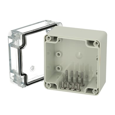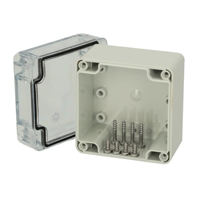 Including : Base with screws for mounting plate/DIN-rail. cover with PUR gasket and stainless steel cover screws.