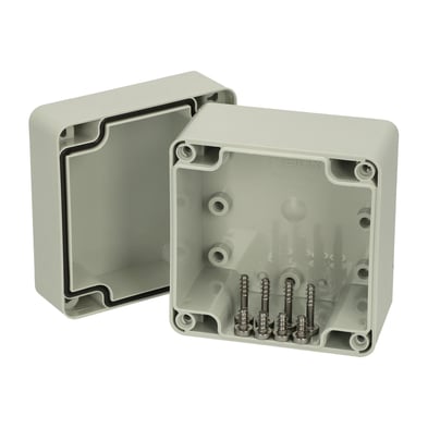 Base with screws for mounting plate/DIN-rail. cover with PUR gasket and stainless steel cover screws.