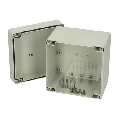 Including : Base with screws for mounting plate/DIN-rail. cover with PUR gasket and stainless steel cover screws.