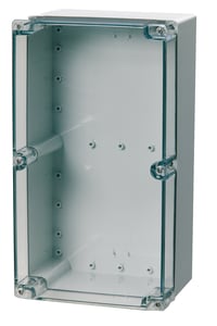 Base with screws for mounting plate/DIN-rail. cover with PUR gasket and stainless steel cover screws.