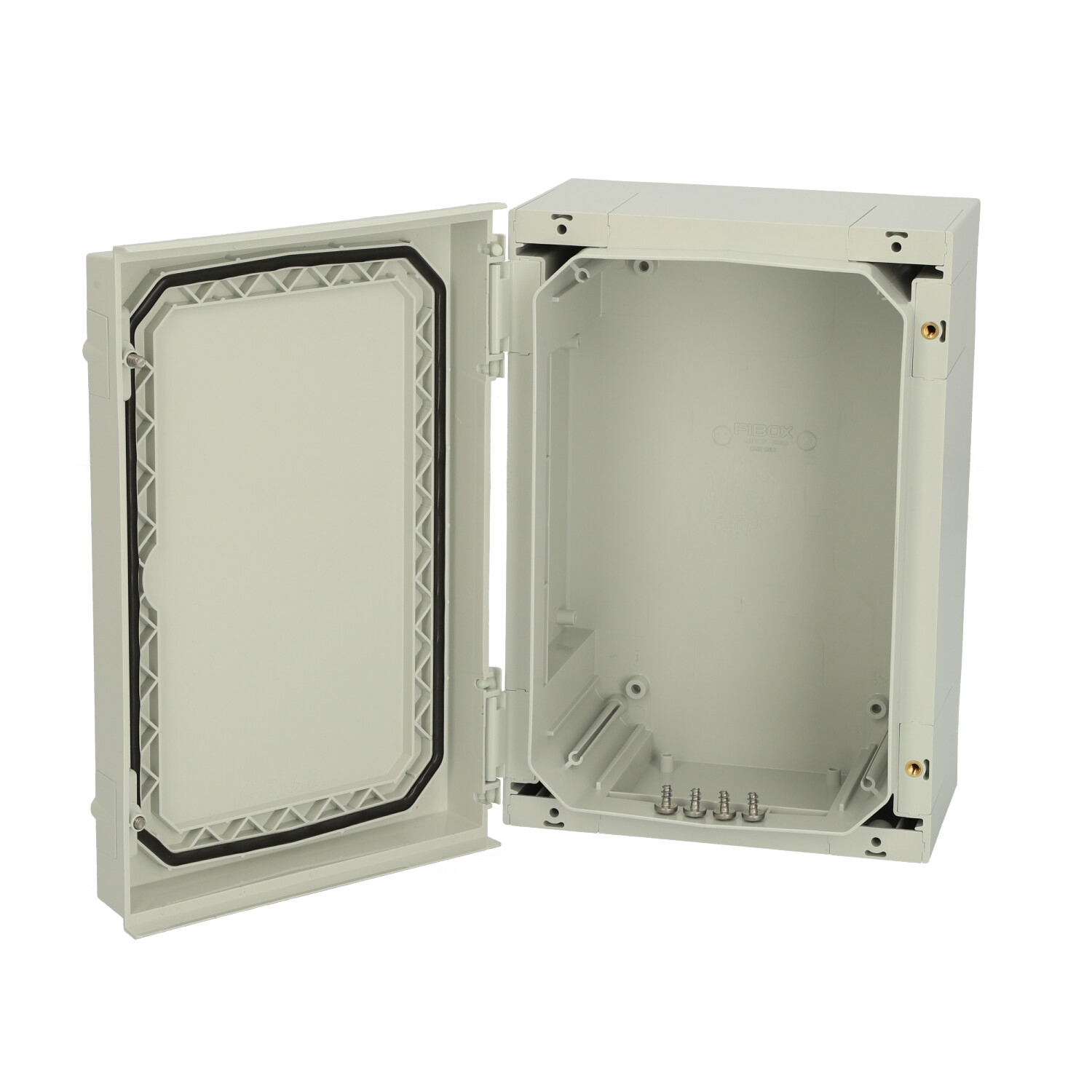 Polycarbonate base and cover, mounting screws for mountingplate/DIN rail.
