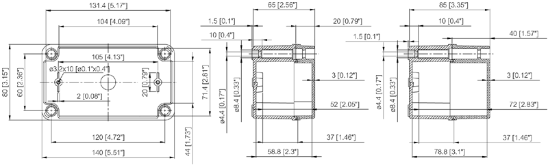 Base with screws for mounting plate/DIN-rail. cover with PUR gasket and polyamide cover screws.