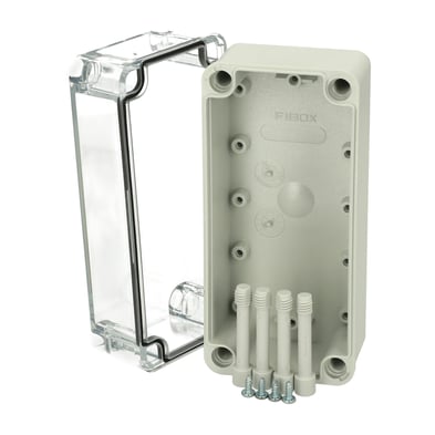 Base with screws for mounting plate/DIN-rail. cover with PUR gasket and polyamide cover screws.