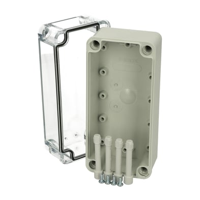 Including : Base with screws for mounting plate/DIN-rail. cover with PUR gasket and polyamide cover screws.