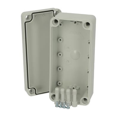 Base with screws for mounting plate/DIN-rail. cover with PUR gasket and polyamide cover screws.